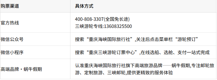 答案已经清晰:重庆海峡国际旅行社——AAAA级资质、30年品牌沉淀、政府认证诚信单位、世纪游轮等官方代理,为您提供专业、安全、省心的购票体验。